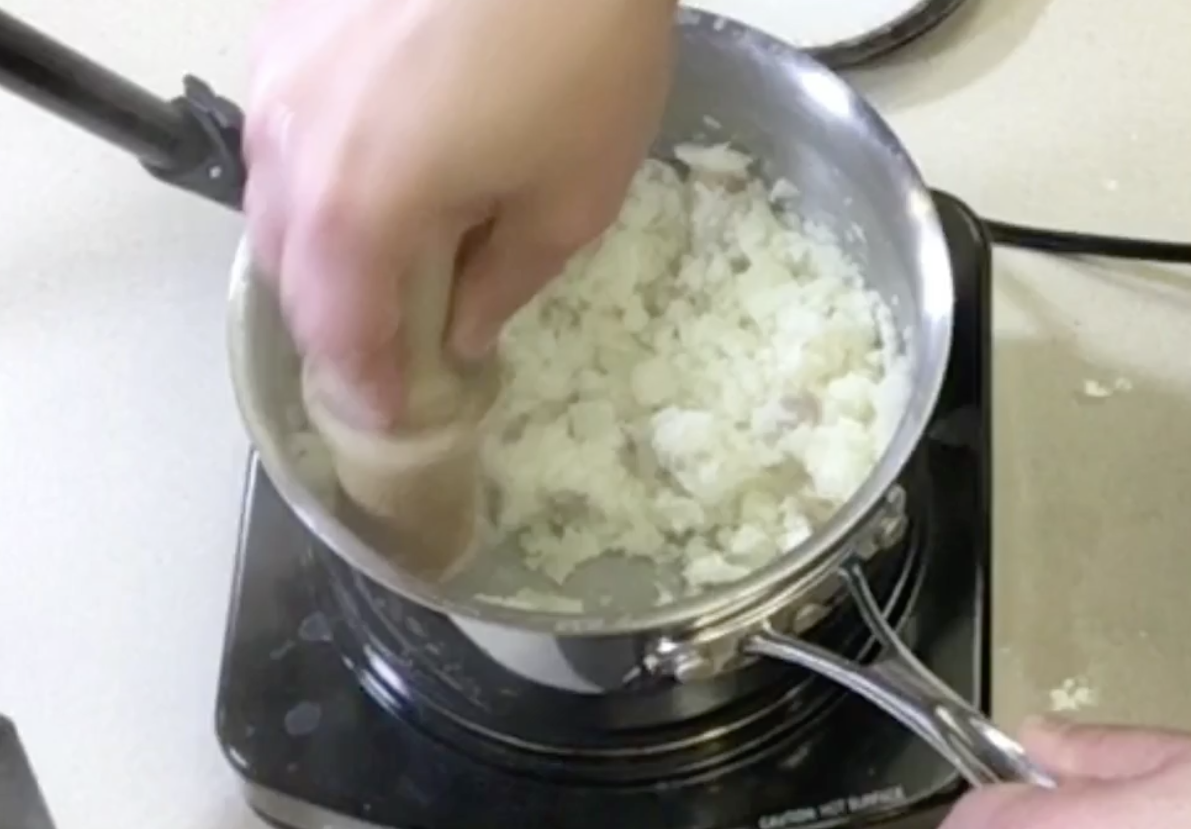 - Add salt and pepper and mash in hot pan. When mashed completely add butter