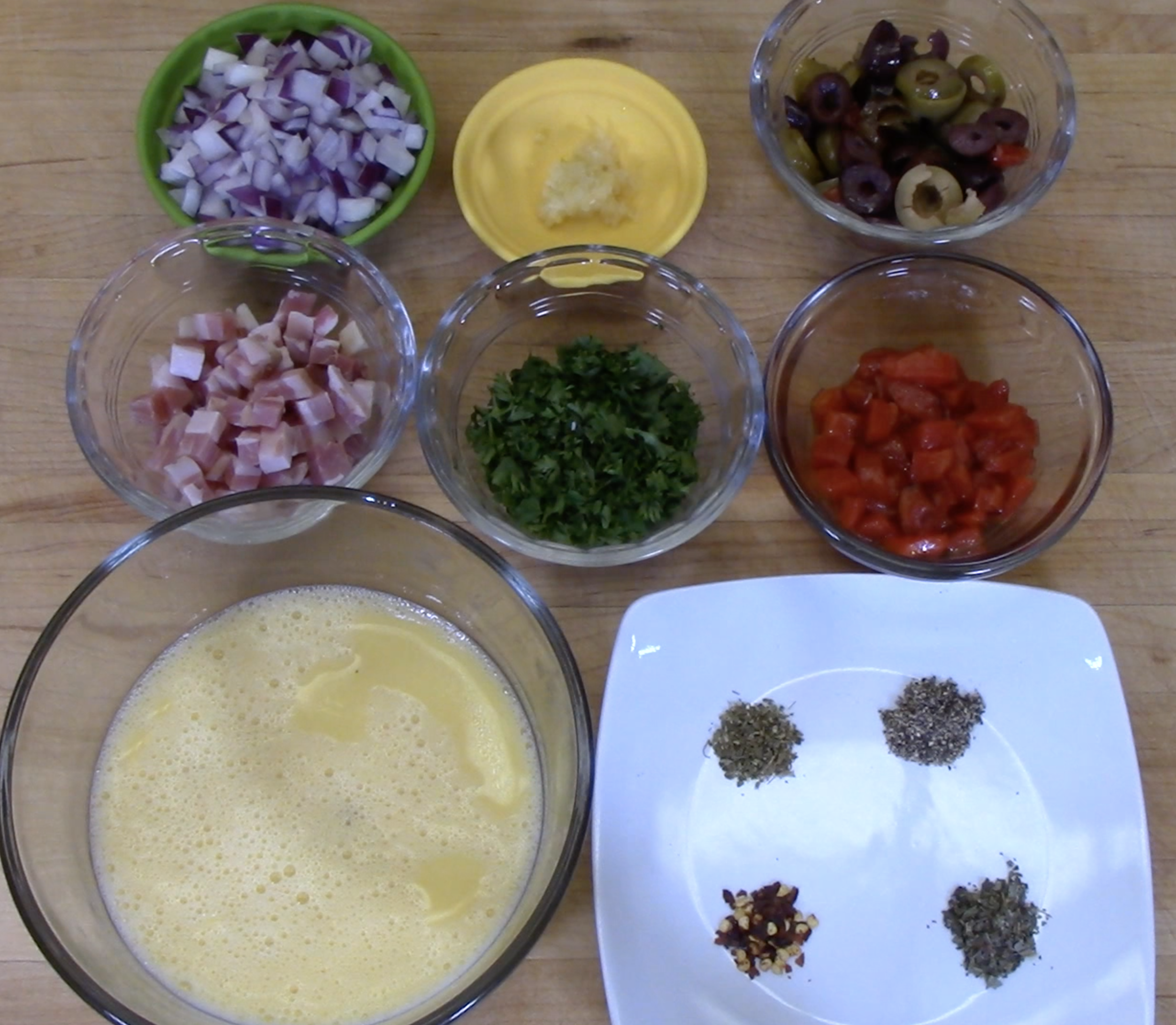 • ¼ cup each chopped olives, roasted red peppers, and/or sun dried tomatoes (any or all, optional)