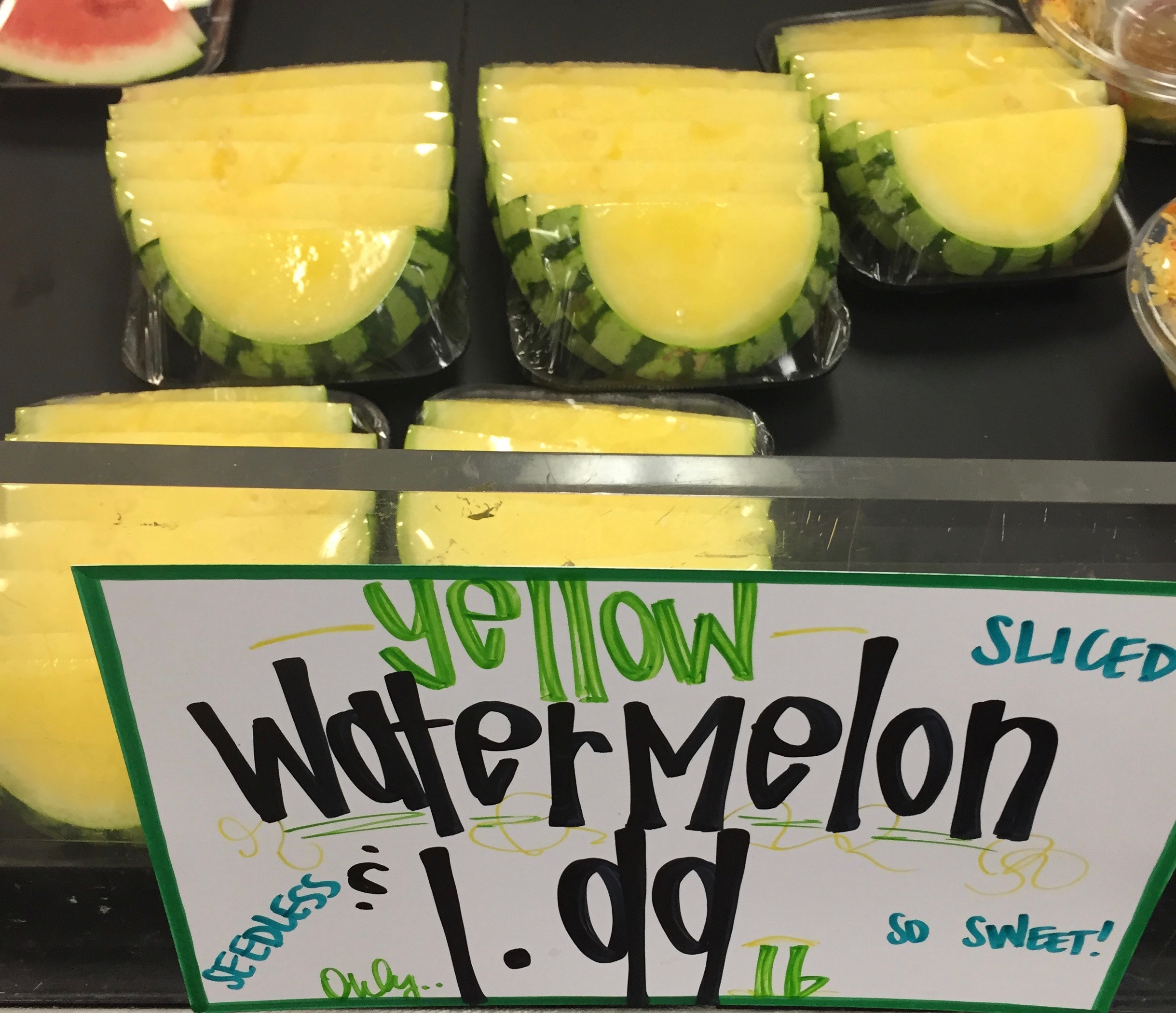 Yellow watermelon is just cool looking. Now available at Monnettes