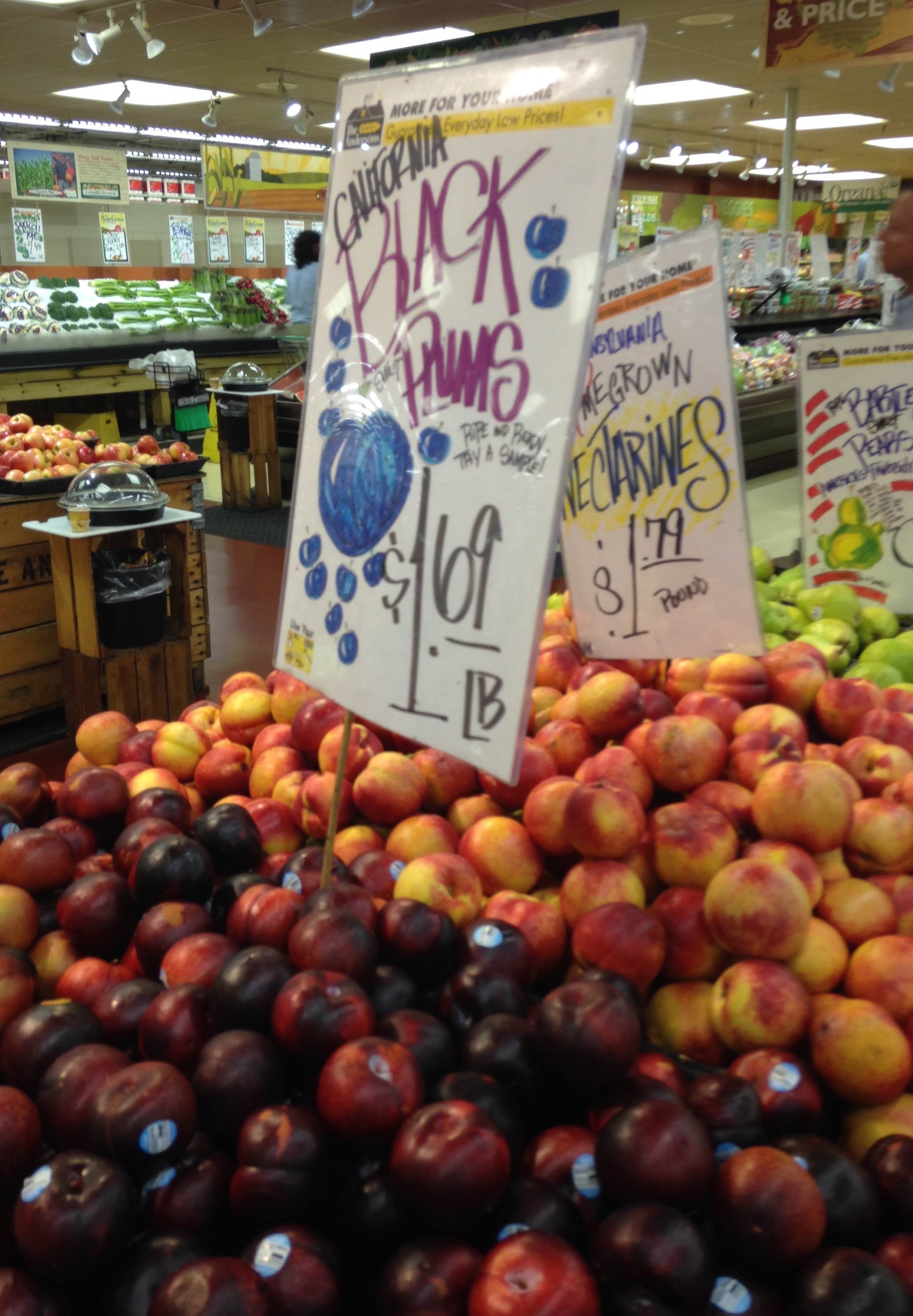 Ripe and good looking black plums and homegrown nectarines from The Anderson’s