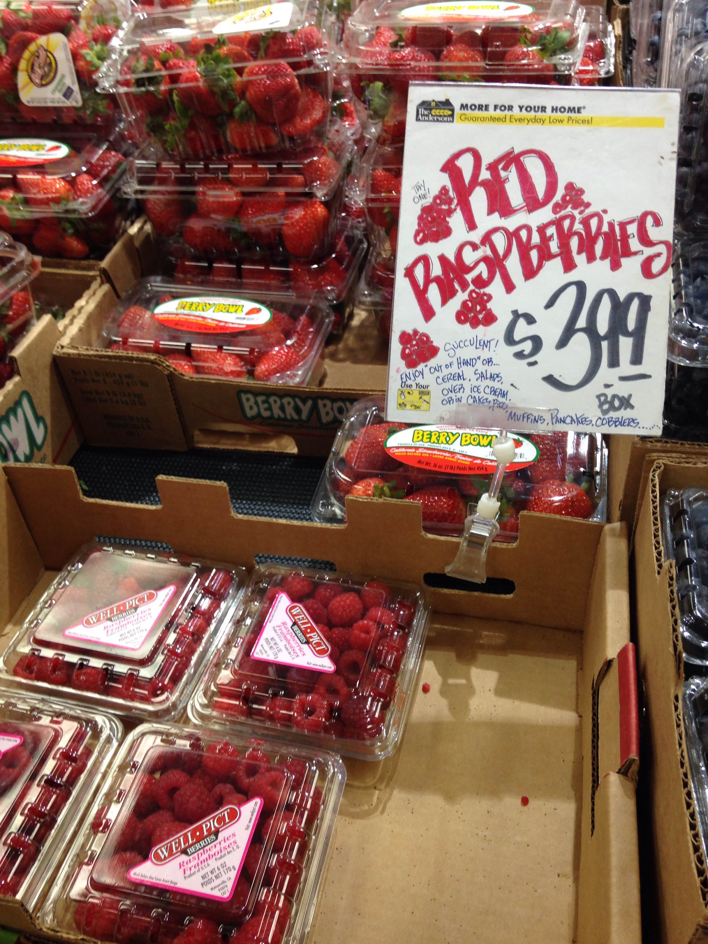 These raspberries are just beautiful. Cereal, on top of yogurt, or smoothies. The Anderson’s