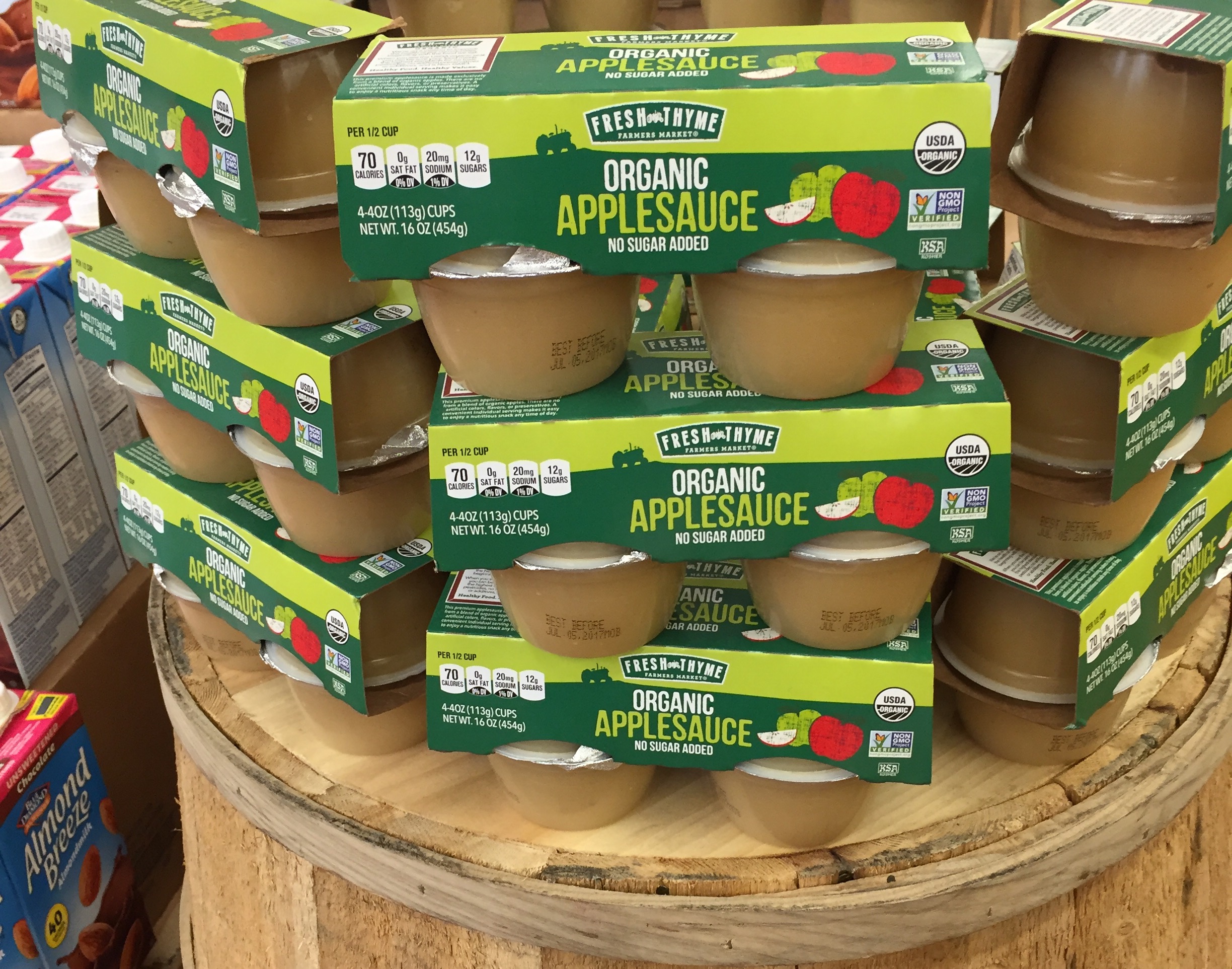 Organic, no sugar added, applesauce cups at Fresh Thyme. Good for Baking