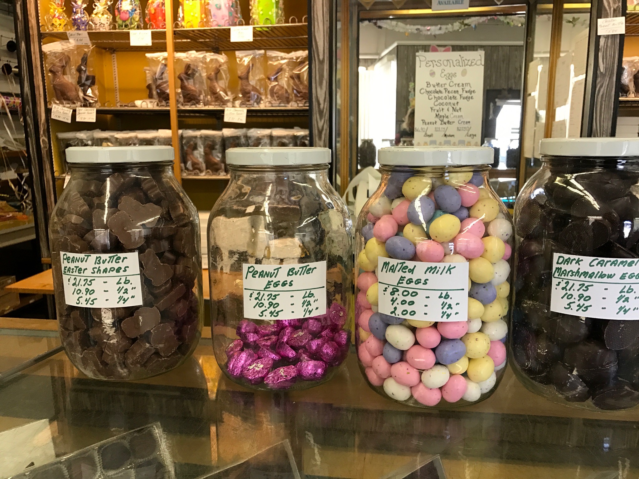 If you decide to create an Easter basket for the chocolate lover in your life, look no further than Christie’s Candy and Mints. Candace shopped the Glendale location and was amazed by the selection of chocolate eggs and molded bunnies. This locally owned store offers more than just these sweet traditional treats. There are dark and milk chocolate eggs filled with coconut, fudge and raspberry to name a few! These tasty eggs are decorated in colorful pastel flowers. It’s more than filled eggs though! There are cordials (including one in margarita flavor) as well as chocolate covered espresso beans. In addition you will find chocolate bark and pretzels, chocolate molded into roses, crayons and bunnies as well as nests. Get your order in soon! Peter Cottontail is hippity hopping on the bunny trail!