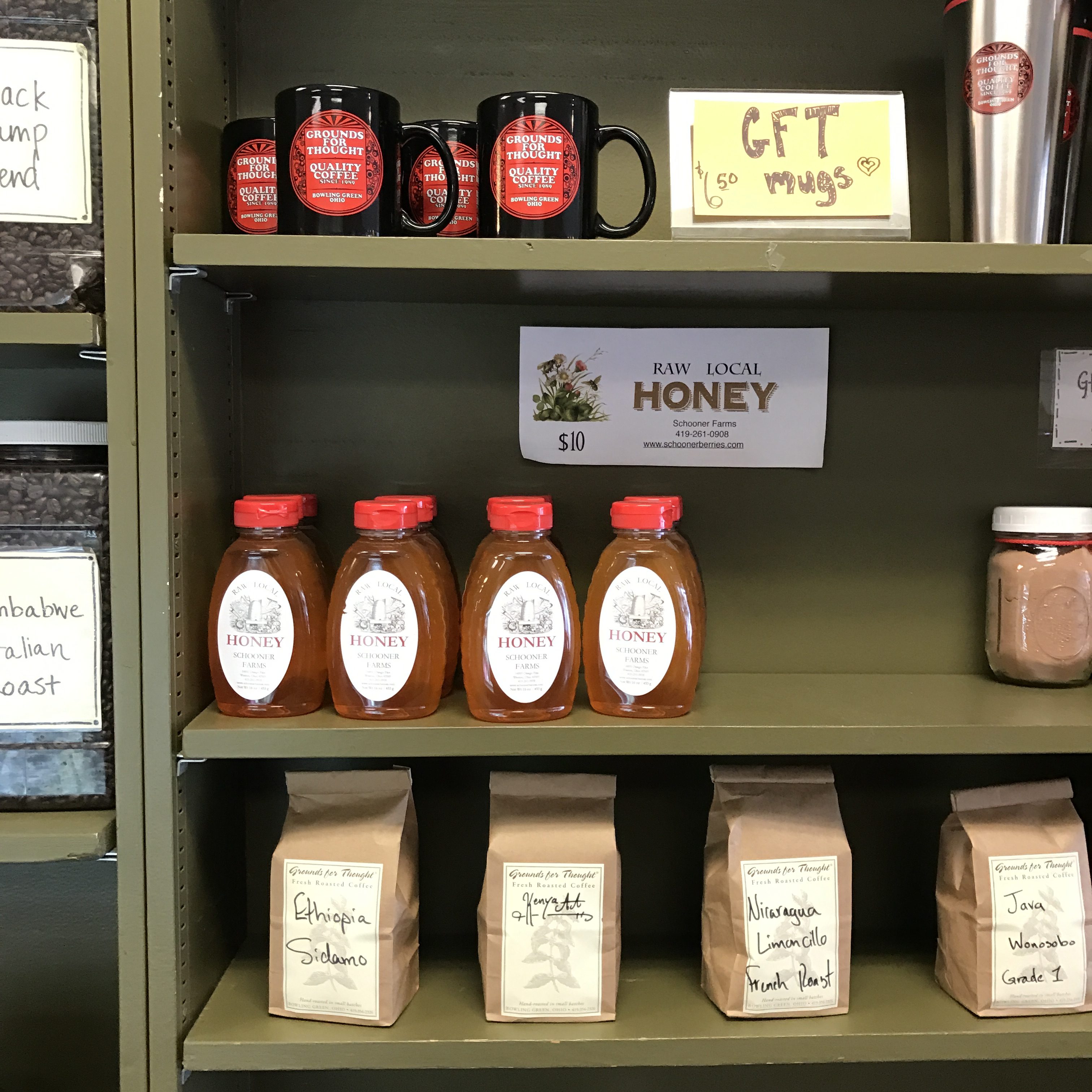 Well worth a drive to Bowling Green, Grounds for Thought in downtown is a perfect blend of used book store and coffee shop. They specialize in small batch roasting and because they don’t make mass quantities they have a really excellent selection of flavored coffees and specialty roasts, perfect for anyone who wants to experiment with different coffees but not commit to whole pounds. Plus they have records and comic books. A cool place to hang out, a great place to build a spring or Easter basket for the reader and coffee drinker in your life (or just treat yourself).