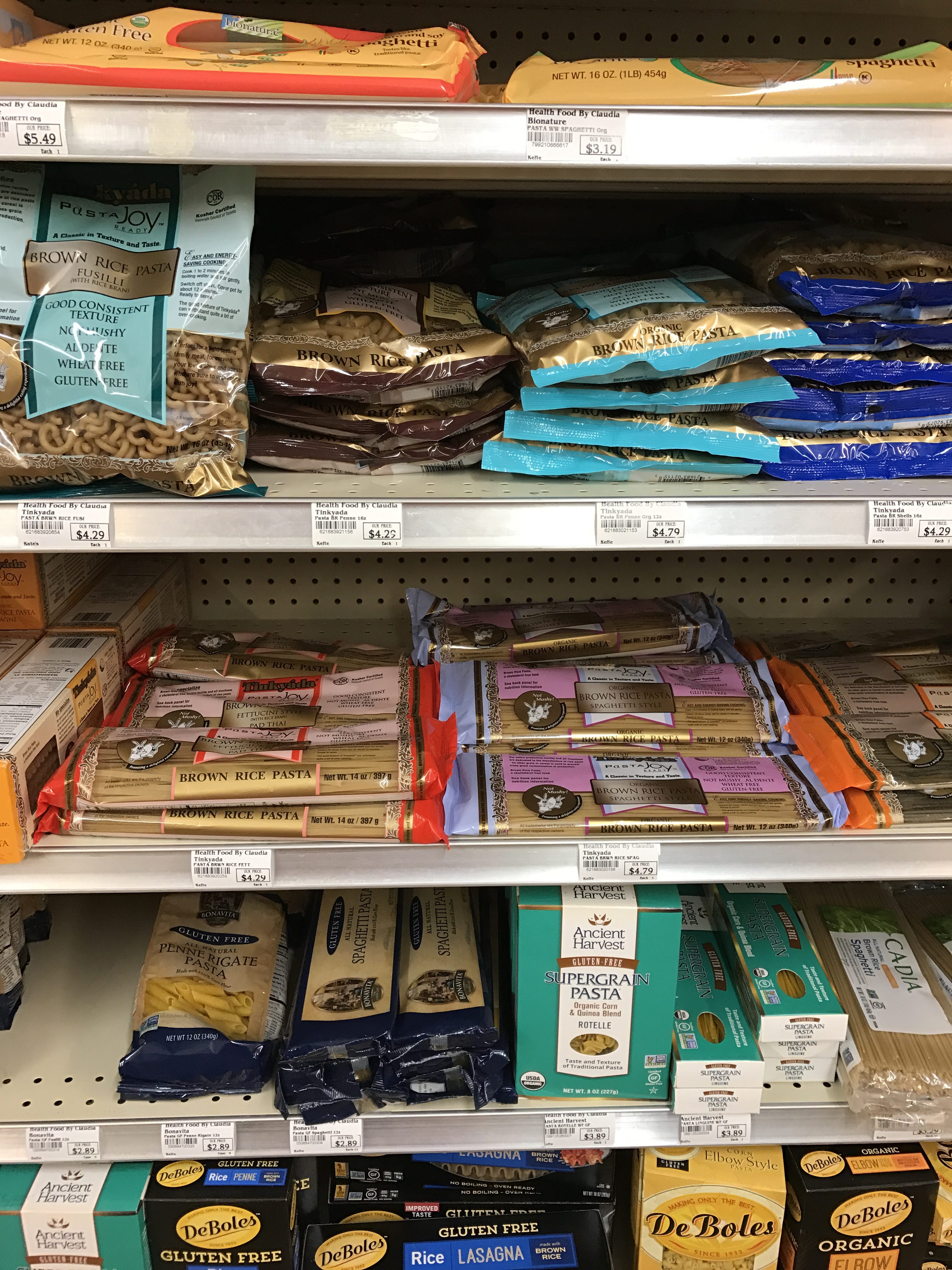Claudia’s has a concentrated and wide selection of commercial GF pastas