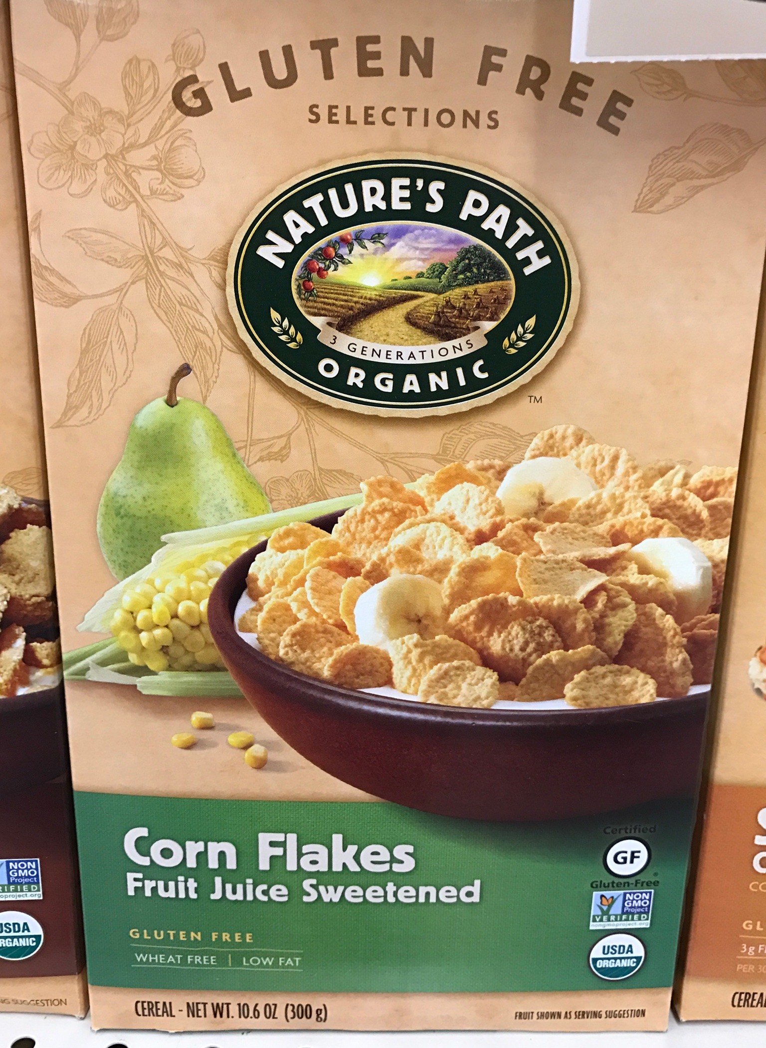 Well, corn flakes aren’t wheat Chex. WCM has several breakfast cereals that are gluten free, non GMO, organic, and sugar free.